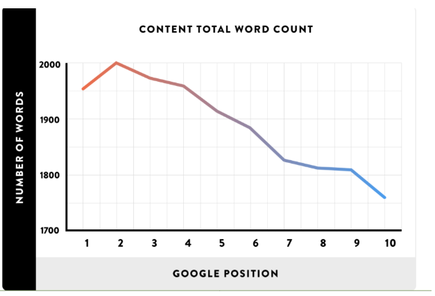 In another important finding from the case study by Backlinko, the average Google first place result contained 1,890 words.